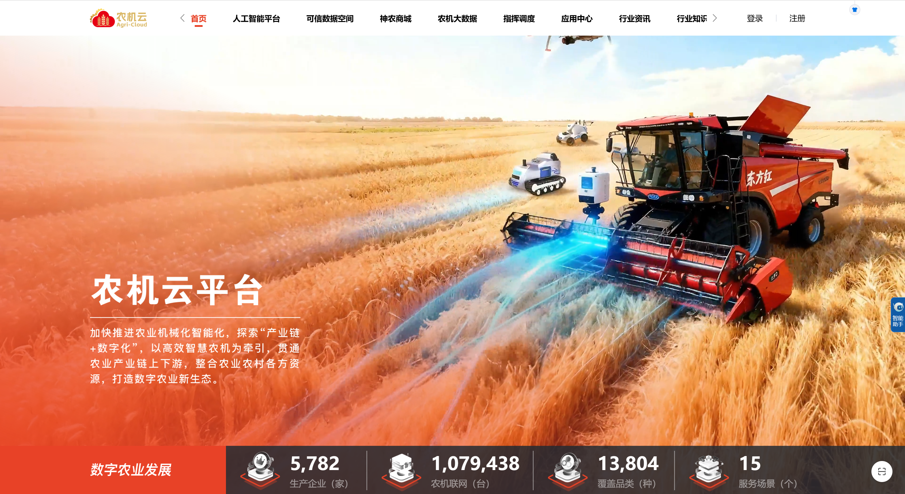 服务农业农村部打造的“全国农机作业指挥调度平台”。目前已接入农机数量近108万台,日均处理数据最高达10亿条,支持黄淮海等重点区域农机协同作业,联动全国1000余家农业应急救灾中心、4500余支服务队,提升防灾减灾能力。为政府部门提供农机作业实时数据与趋势分析,成为保障农业应急救灾与规模化作业的核心基础设施,助力国家粮食安全战略落地。