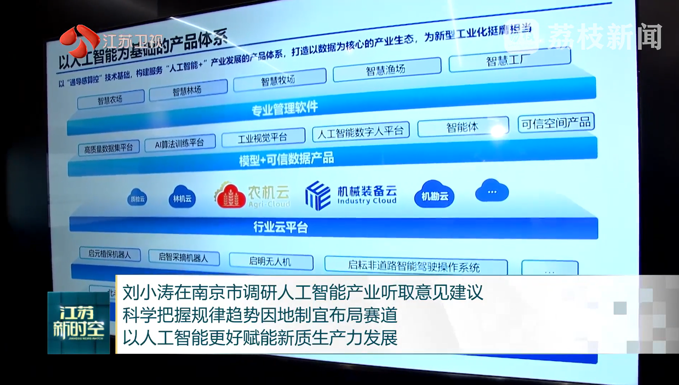 10月14日下午,江苏省省长刘小涛在南京市调研人工智能产业,听取高校院所、企业和一线科研人员的意见建议。他强调,要深入学习贯彻习近平总书记关于人工智能的重要论述和对江苏工作重要讲话精神,牢牢把握人工智能发展趋势和规律,因地制宜布局人工智能新赛道,为加快发展新质生产力、推动高质量发展蓄势赋能。