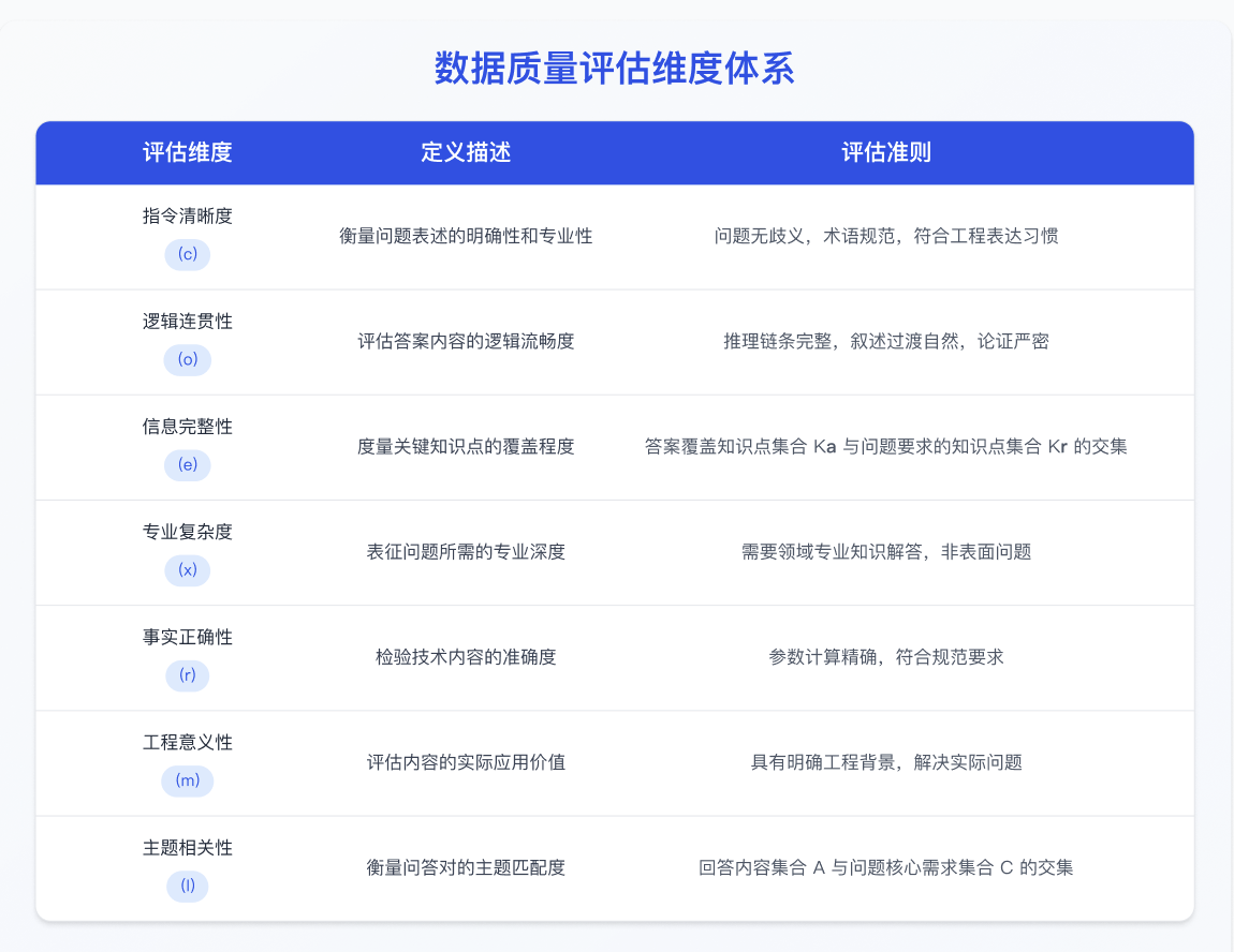在数据评估阶段,团队建立了涵盖指令清晰度、连贯性、完整性、正确性等维度的评估体系,结合大模型自动评分与阈值筛选,确保了最终语料库的可靠性、一致性与专业性。这套闭环优化架构保障了数据能持续提升,为模型训练奠定了坚实基础。