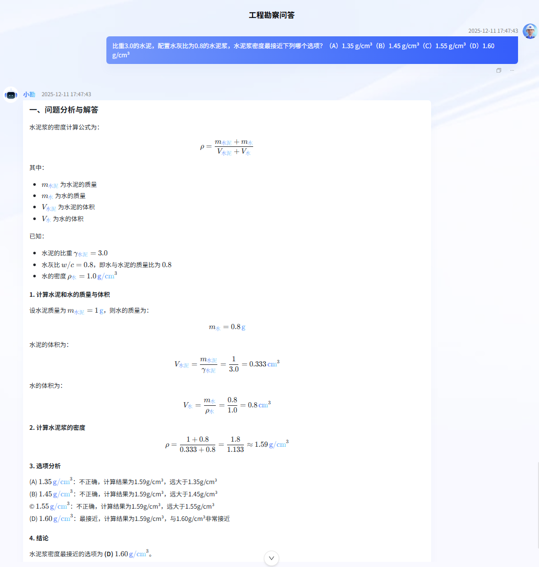 “灵通·勘察设计大模型”精准聚焦于此。它基于通义千问大模型(Qwen)进行微调训练,并采用全自主可控的国产化算力平台,汇聚了超过1470万Tokens的高质量工程勘察领域语料库。模型深度融合了行业机理与海量可信数据,旨在为勘察设计人员、岩土工程师及高校师生等核心群体提供精准服务,能将规范查询效率提升十倍以上。围绕实际业务场景,模型重点打造了工程勘察问答、规范标准导航、辅助查表计算三大核心功能。